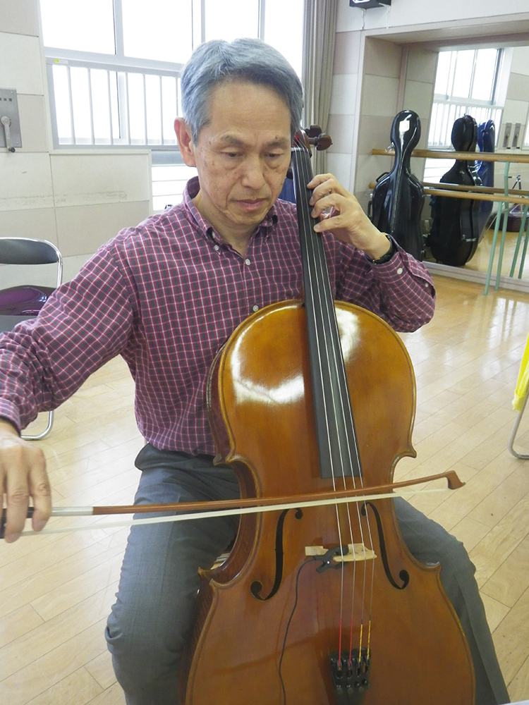 チェロだけのアンサンブルは何度か経験していてその楽しさを忘れられずにいたこともありましたが、「銀河」だから、入会しました。「銀河」はアンサンブルを皆で楽しみましょうという雰囲気に包まれていて、そこが魅力的なのです。しかも前嶋先生の丁寧なご指導があって学ぶことばかり。毎回わくわくしながら練習に参加しています。